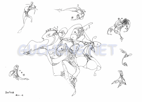 鱼网飞天捉美人,美人化作小飞虫,鱼网变成大老鹰,嘤嘤吟: